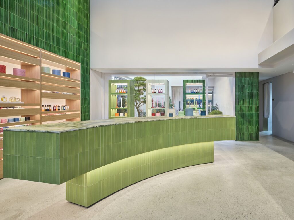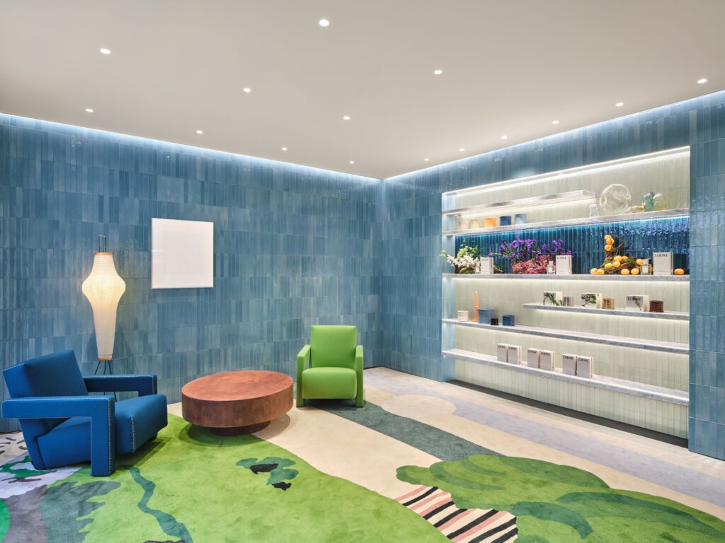 성수동 연무장길 중심부에 자리 잡은 이번 플래그십 스토어는 약 344㎡(104평) 규모의 2층 건물로 구성됐다. 단순한 매장을 넘어 ‘식물학자의 아카이브’와 ‘컬렉터의 집’을 테마로 한 이 공간은 로에베 퍼퓸의 전 제품군을 비롯해 카페, 루프탑 테라스 등 다채로운 경험을 선사한다. 특히 건물 외관을 장식한 수제 틸블루 세라믹 타일은 빛의 반사에 따라 불규칙한 미감을 뽐내며 성수동 거리에서 독보적인 존재감을 드러낸다.